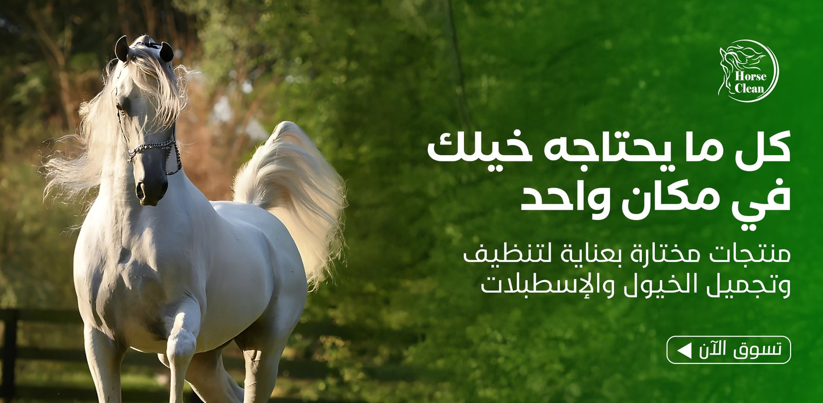 كل ما يحتاجه حصانك في باقة واحدة!” “عناية شاملة للحصان… نظافة، حماية، ولمعان.”